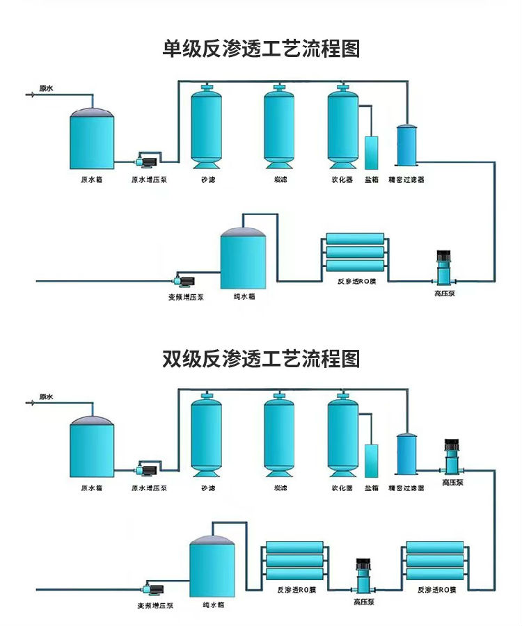 預處理系統(tǒng)-反滲透系統(tǒng)-中間水箱-粗混合床-精混合床-純水箱-純水泵-紫外線殺菌器-拋光混床-精密過濾器-用水對象(≥18MΩ.CM)(傳統(tǒng)工藝) 預處理-反滲透-中間水箱-水泵-EDI裝置-純化水箱-純水泵-紫外線殺菌器-拋光混床-0.2或0.5μm精密過濾器-用水對象(≥18MΩ.CM)(最新工藝) 預處理-一級反滲透-加藥機(PH調(diào)節(jié))-中間水箱-第二級反滲透(正電荷反滲膜)-純水箱-純水泵-EDI裝置-紫外線殺菌器-0.2或0.5μm精密過濾器-用水對象(≥17MΩ.CM)(最新工藝) 預處理-反滲透-中間水箱-水泵-EDI裝置-純水箱-純水泵-紫外線殺菌器-0.2或0.5μm精密過濾器-用水對象(≥15MΩ.CM)(最新工藝) 預處理系統(tǒng)-反滲透系統(tǒng)-中間水箱-純水泵-粗混合床-精混合床-紫外線殺菌器-精密過濾器-用水對象(≥15MΩ.CM)(傳統(tǒng)工藝) EDI純水模塊和RO反滲透在純水中的應用 RO、EDI、樹脂離子交換是當今制備純水的必選工藝設備。